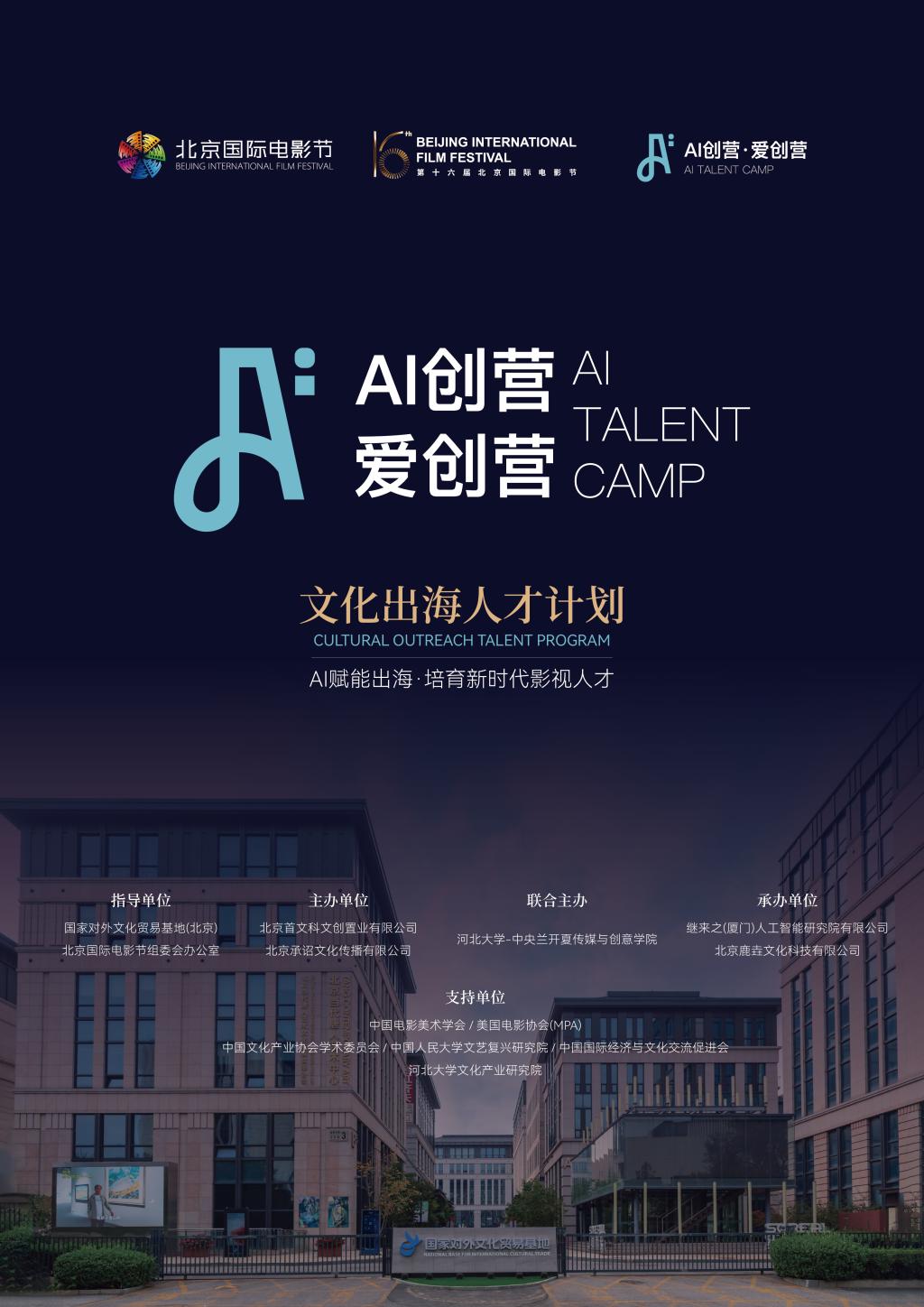 本次活动由国家对外文化贸易基地(北京)、北京国际电影节组委会办公室联合指导,北京首文科文创置业有限公司、北京承诏文化传播有限公司、河北大学-中央兰开夏传媒与创意学院联合主办,依托文化出口平台优势,搭建中国影视文化高质量出海全链条支撑体系。